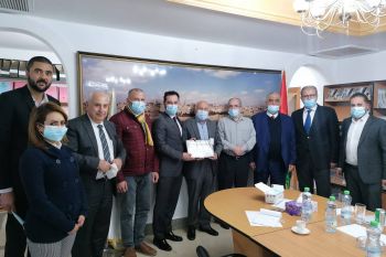 رام الله - إستقبلت جمعية رجال الأعمال الفلسطينيين – القدس سعادة الملحق التجاري التركي السيد صباح الدين طرهان في مقرها في مدينة رام الله وكان في إستقباله نائب رئيس مجلس إدارة الجمعية السيد كامل مجاهد، ورئيس مجلس الأعمال الفلسطيني التركي المشترك المهندس محمد العامور ، ورئيس لجنة تفعيل مجالس الاعمال المشتركة في الجمعية المهندس زياد عنبتاوي، وأعضاء من مجلس إدارة الجمعية المهندس محمود الزلموط وأنور الشنطي ورائد سلامة. ويأتي هذا اللقاء على هامش التحضيرات لعقد مجلس الأعمال الفلسطيني التركي المشترك في دورته (18) قبل نهاية هذا العام.