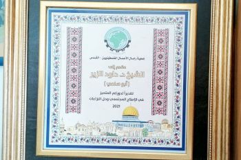 رام الله - كرمت جمعية رجال الاعمال الفلسطينيين – القدس أعضاء لجنة الإصلاح برئاسة الشيخ داود الزير عضو الهيئة العامة للجمعية لما حققوه من نجاح في حل الخلاف ودرء الفتنة بين أبناء شعبنا في محافظة الخليل.